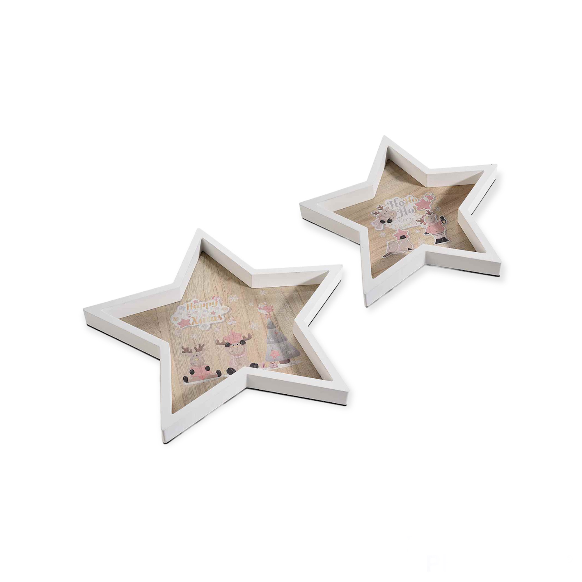Set 2 vassoi in legno a forma di stella con renna rosa