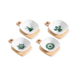 Set 4 coppette con vassoio a tagliere decorazioni verdi
